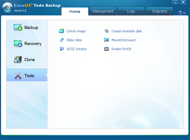 - Advanced Backup & Disk Tools: Disk cloning, partition/dynamic volume cloning, mounting/unmounting of image.